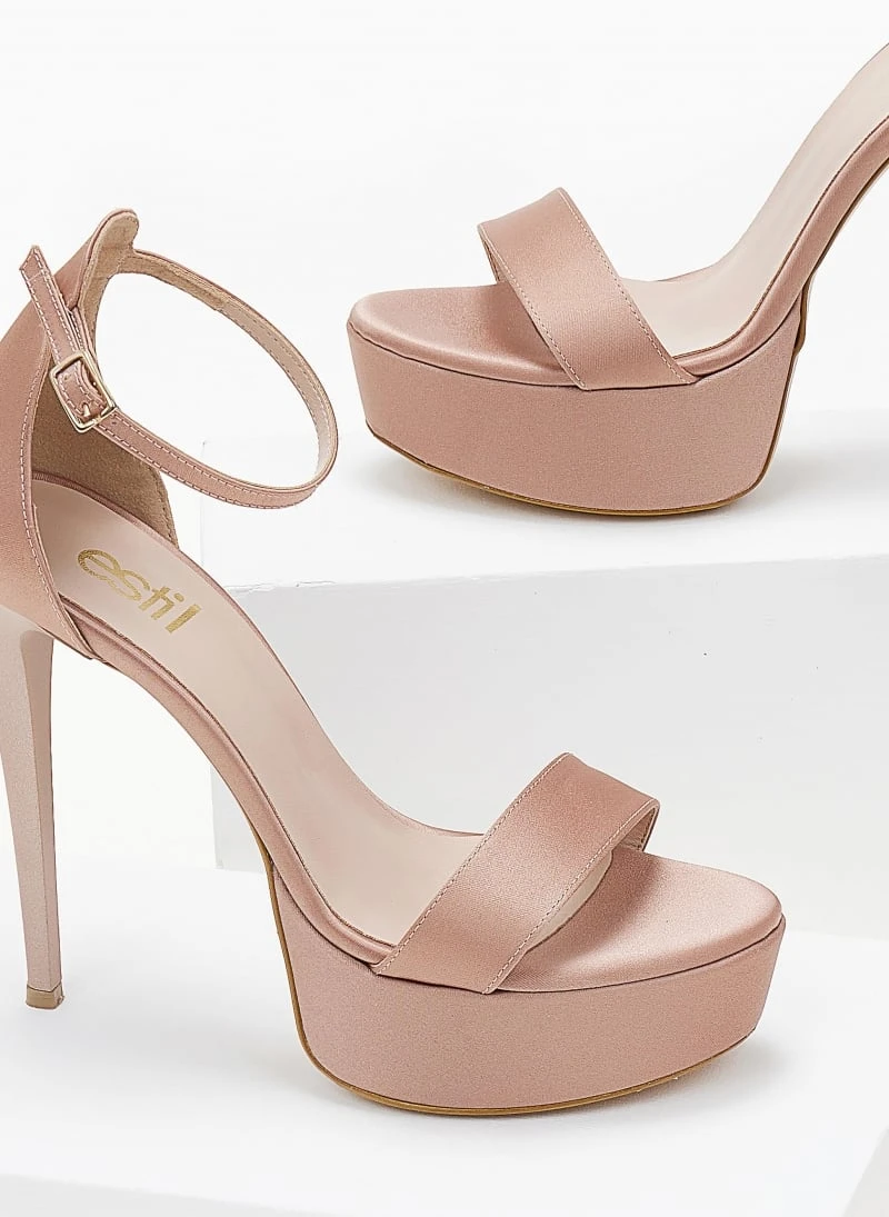 Πέδιλα σατέν TFP με κλειστή φτέρνα. Δένουν με μπαρέτα στο ύψος του αστραγάλου. Έχουν ψηλό λεπτό τακούνι και φιάπα.