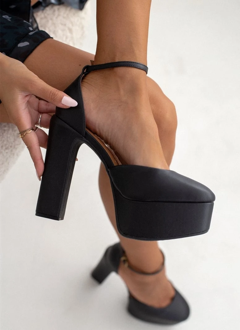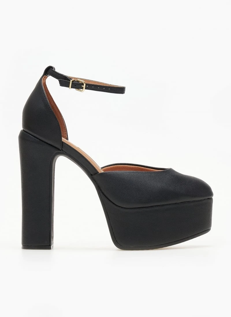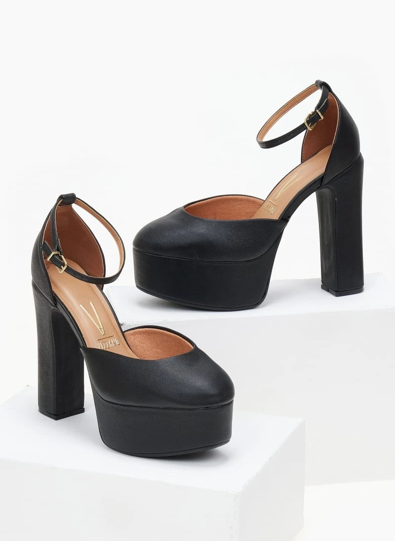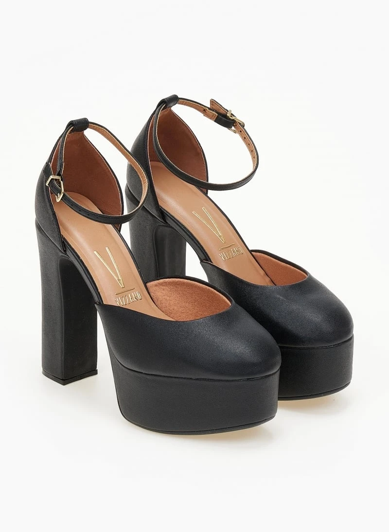 Γόβες VIZZANO platform . Έχουν ψηλή φιάπα και χοντρό τακούνι. Δένουν με μπαρέτα στο ύψος του αστραγάλου και είναι ανοιχτές στο πλάι. Στρογγυλή γραμμή. Έχουν μαλακό ανατομικό πάτο. Σόλα με λάστιχο.