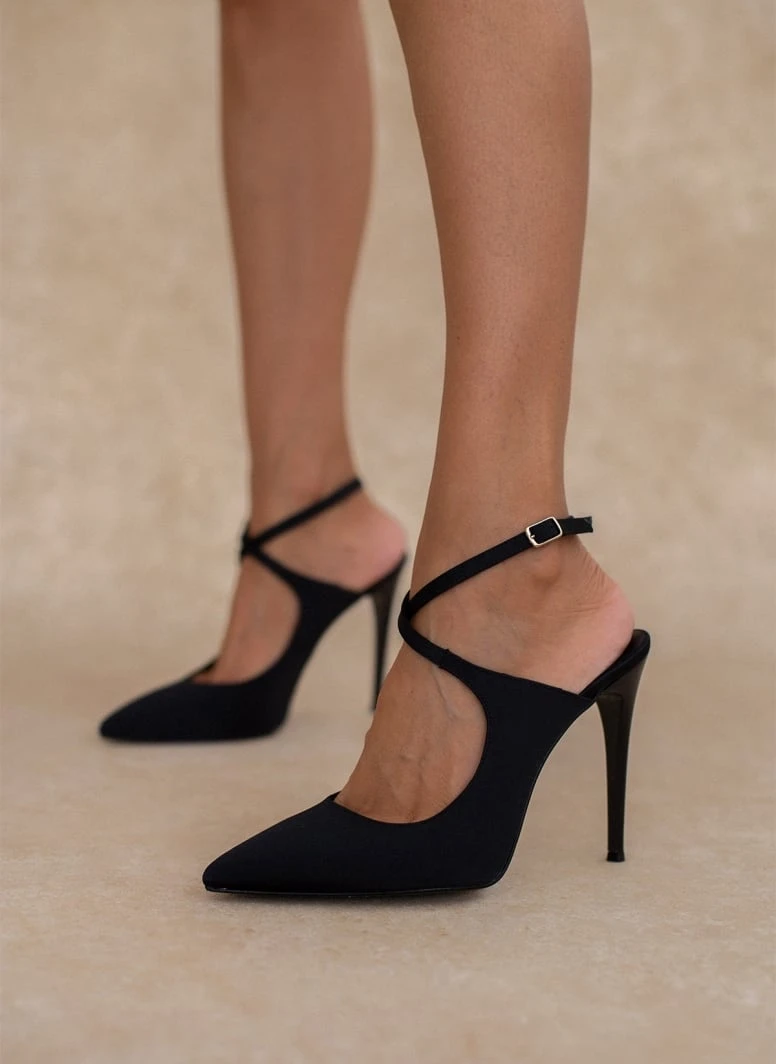 Γόβες μυτερές με χιαστί δέσιμο Tfp – Μαύρο