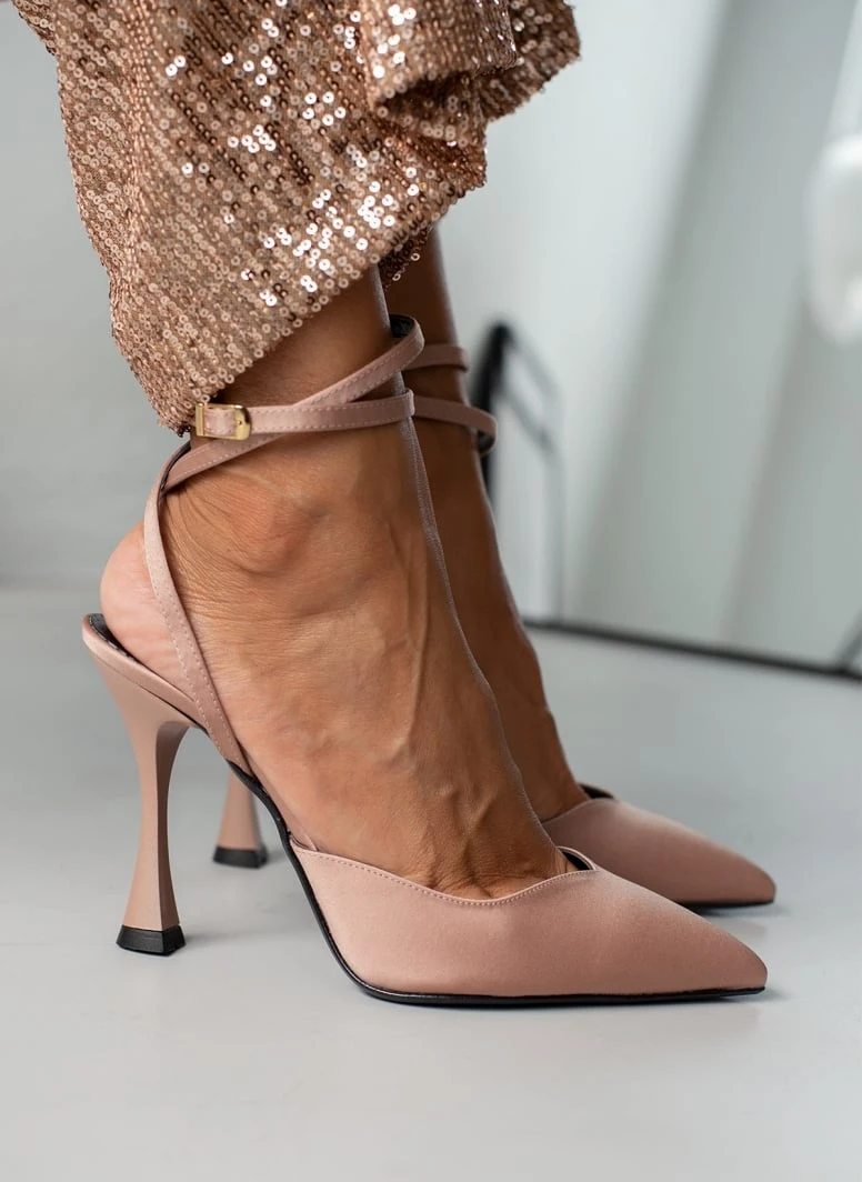 Γόβες μυτερές με χιαστί δέσιμο Tfp – Nude