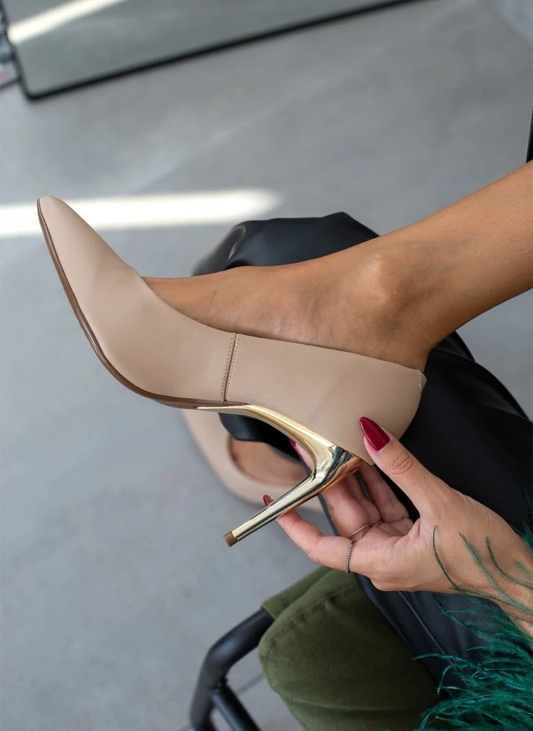 Γόβες μυτερές με μεταλλικό τακούνι VIZZANO 1344.200 – Μπεζ