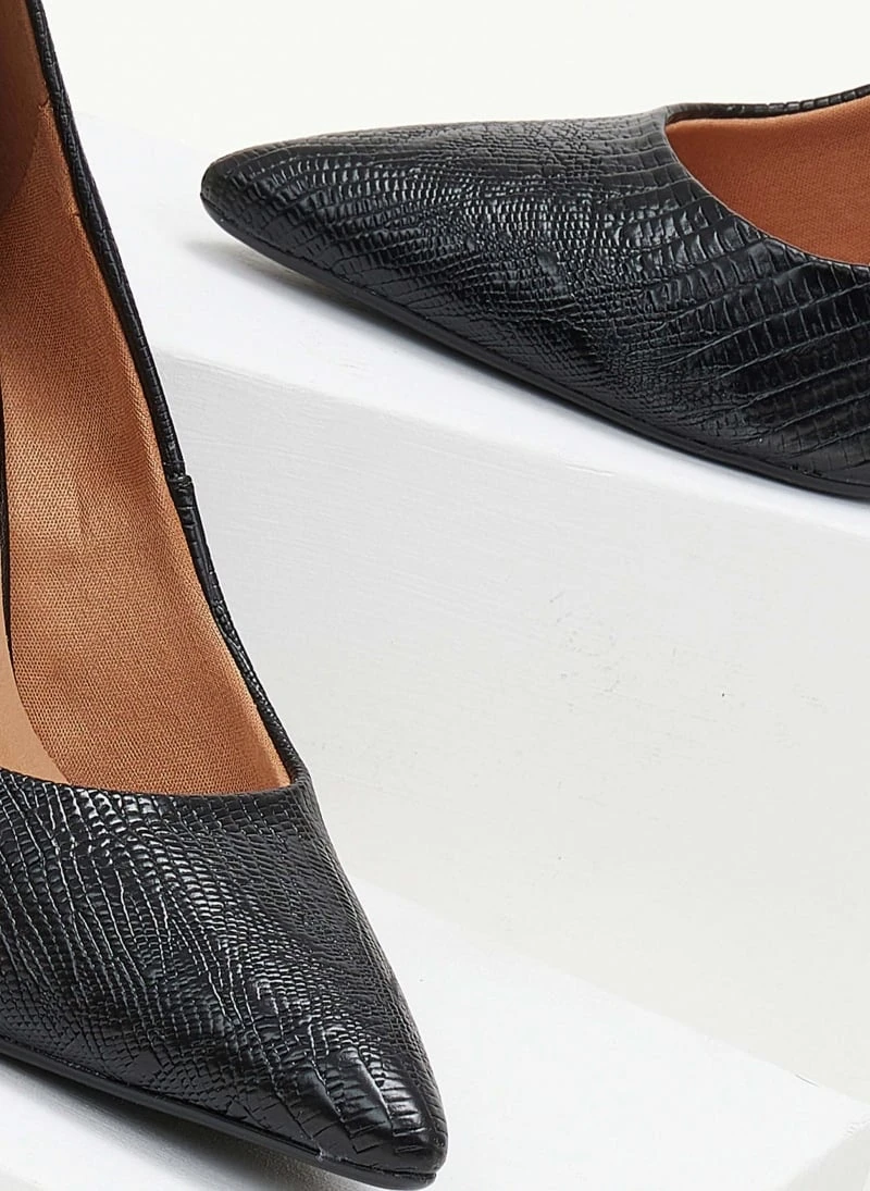 Γόβες μυτερές VIZZANO με ανάγλυφο pattern. Έχουν λεπτό ψηλό τακούνι. Διαθέτουν ανατομικό μαξιλαράκι στο πέλμα. Λάστιχο στη σόλα.