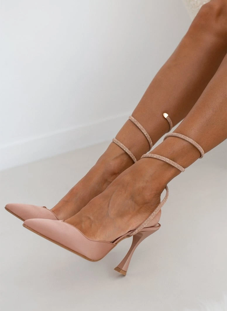 Γόβες μυτερές με Strass έλασμα Tfp – Nude