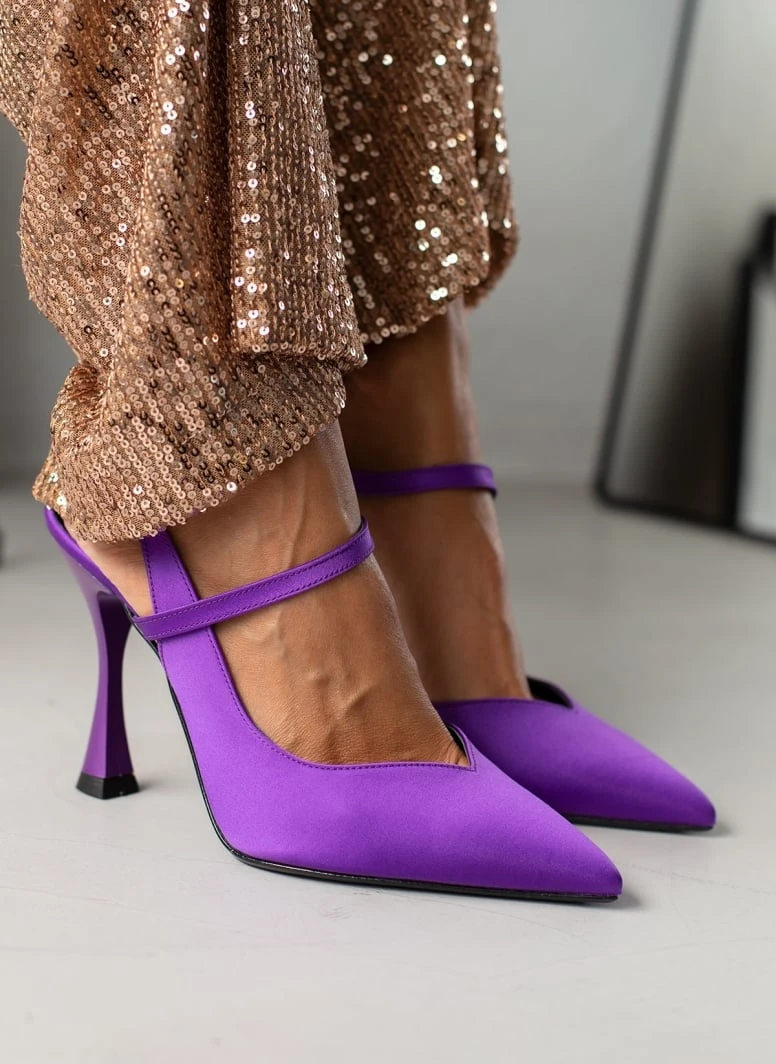 Γόβες σατέν με λοξό λουράκι Tfp – Μωβ