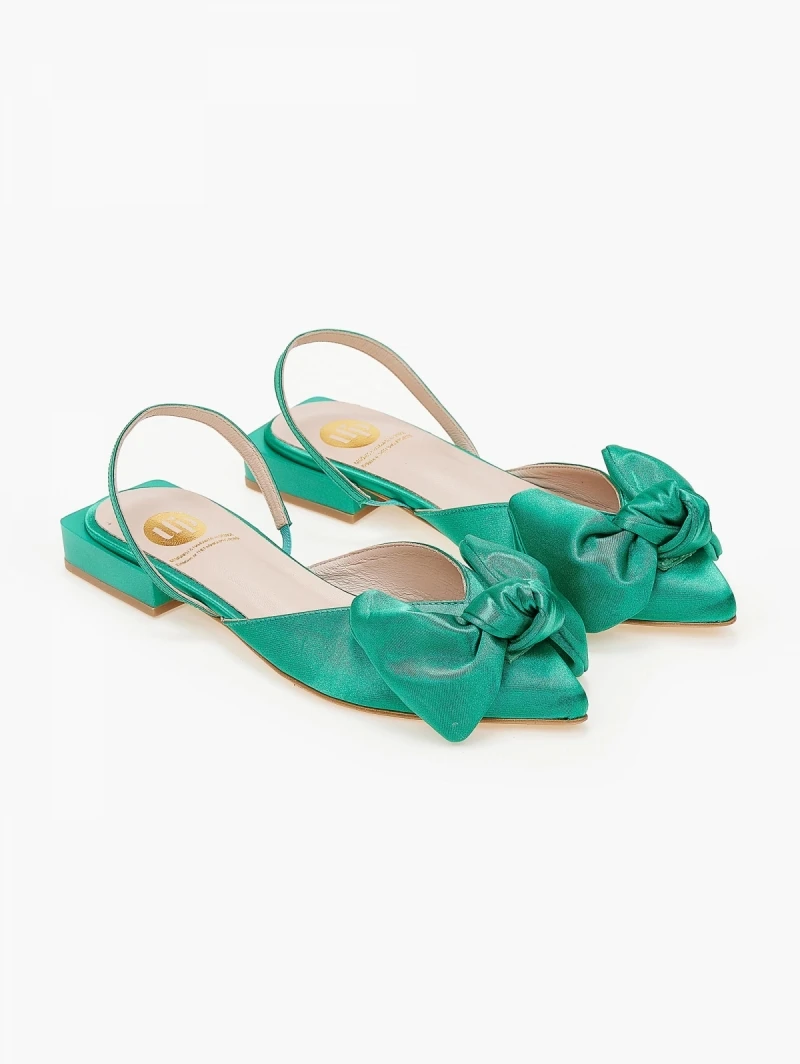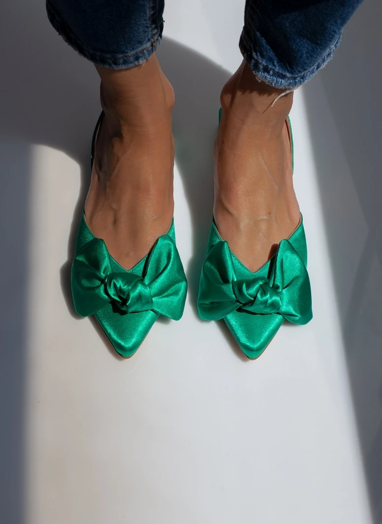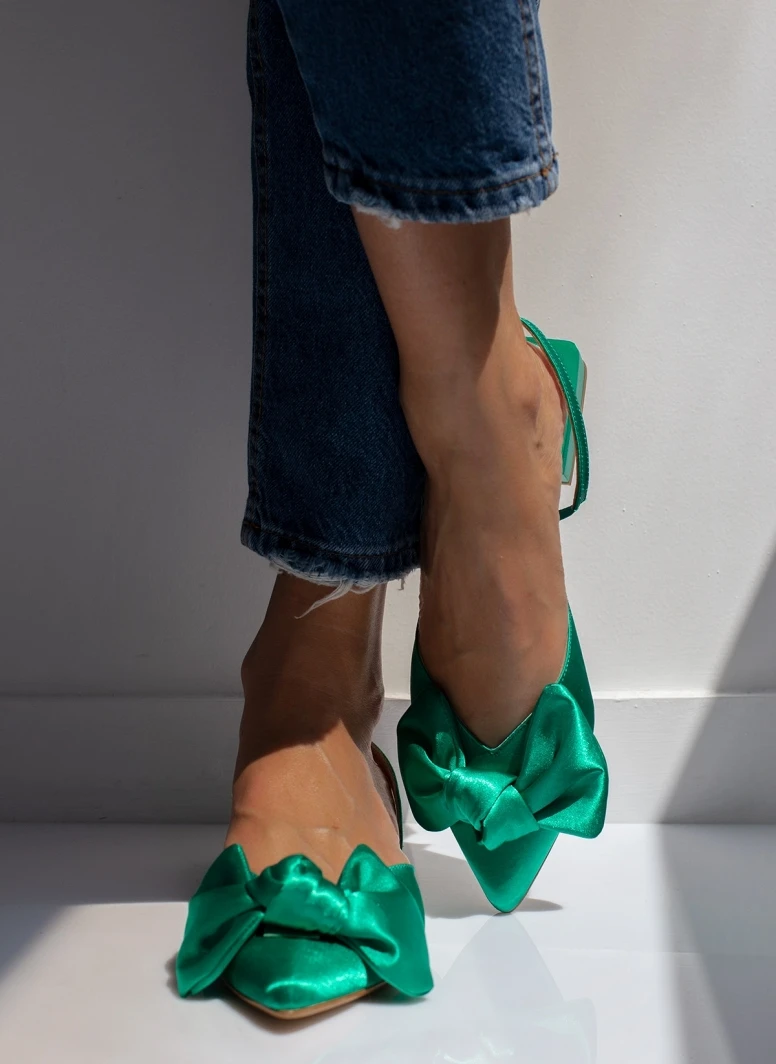 IRIS Mules σατέν με φιόγκο Tfp – Σμαραγδί