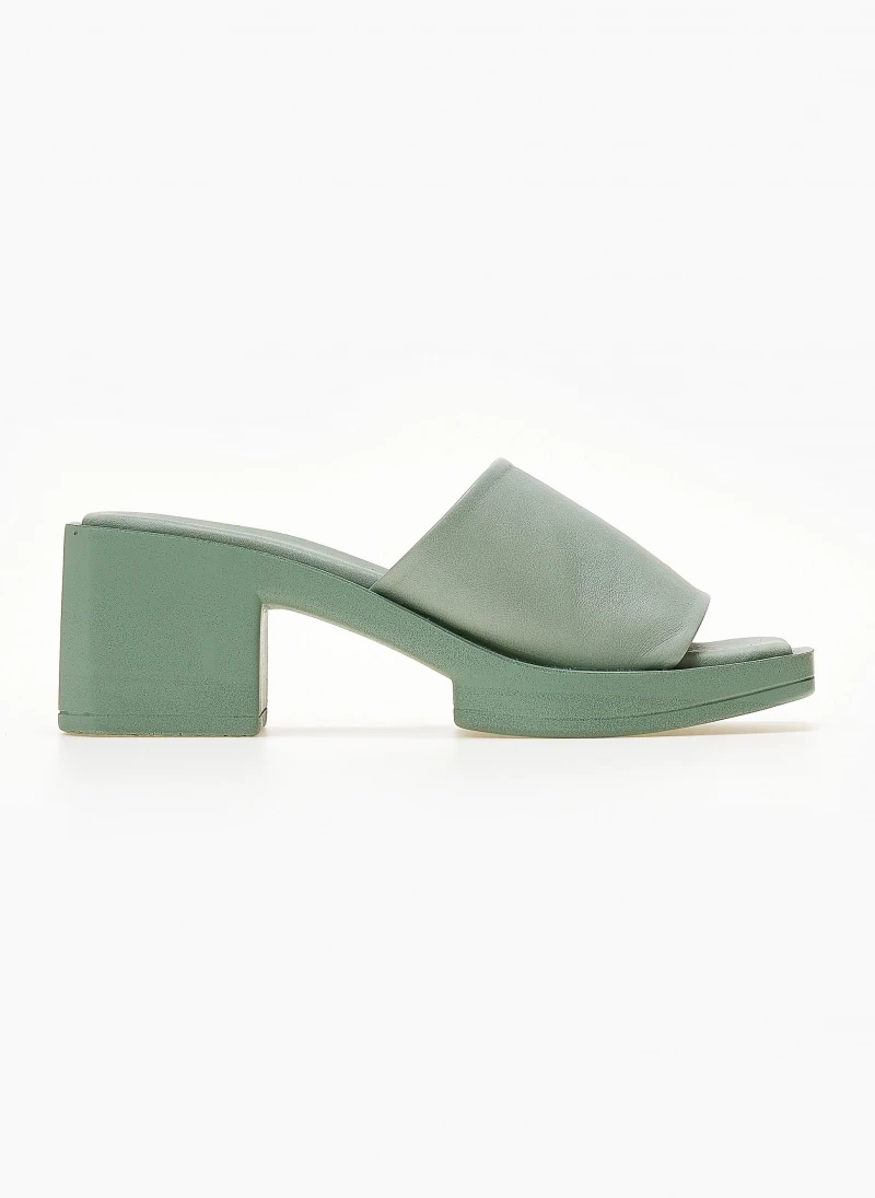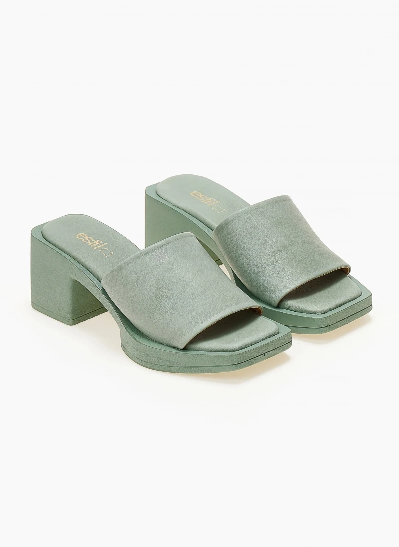 Mules δερμάτινα με χαμηλό τακούνι Estil – Μέντα
