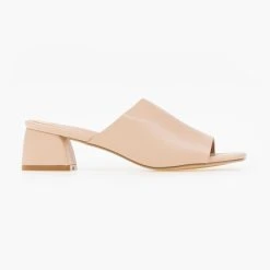 Δερμάτινα mules estil με φαρδιά φάσα. Έχουν χαμηλό τετράγωνο τακούνι. Καρέ γραμμή. Δερμάτινος πάτος με ενίσχυση. Ελληνικής κατασκευής.