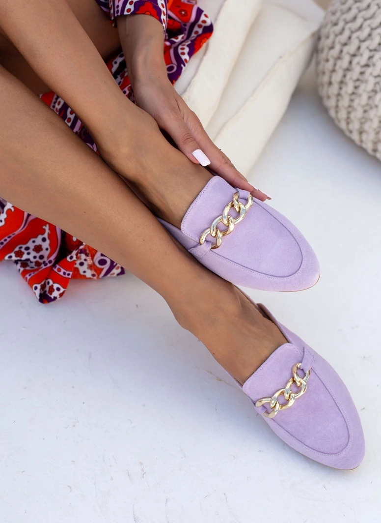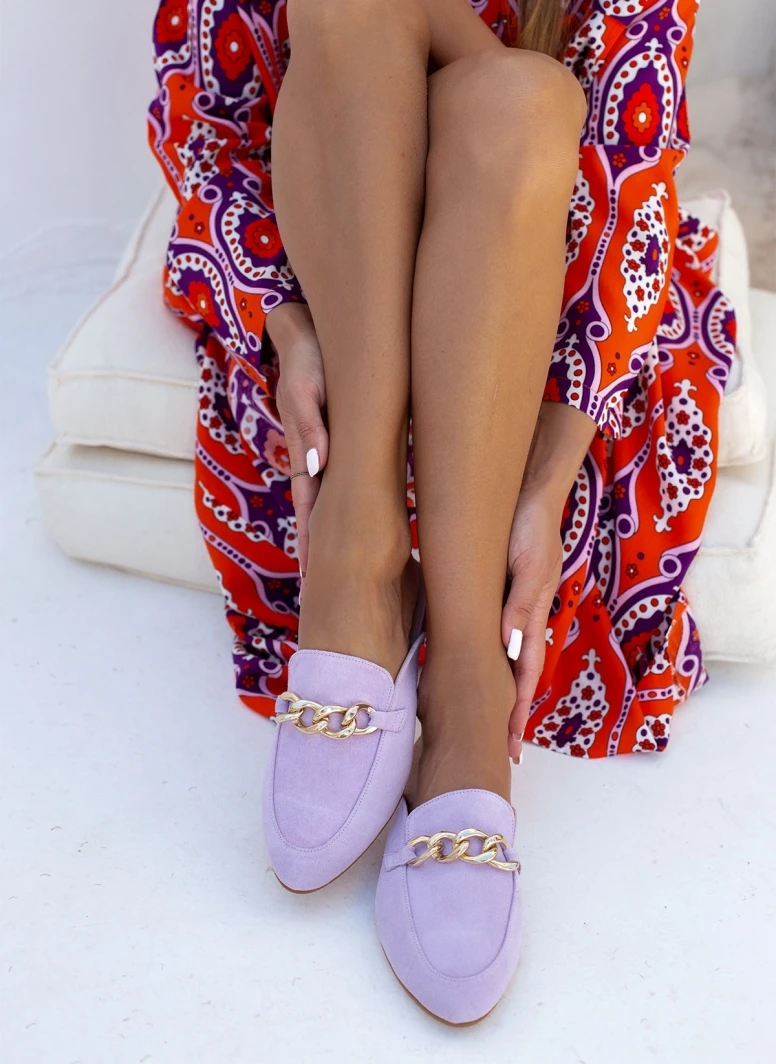 Mules καστόρινα με αλυσίδα Estil – Λιλά