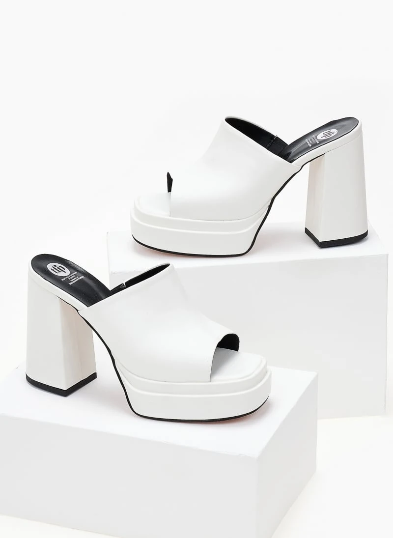 Mules με χοντρό ιδιαίτερο τακούνι Tfp – Λευκό