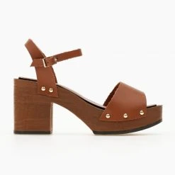 Πέδιλα δερμάτινα Estil με ξύλινη σόλα – Ταμπά