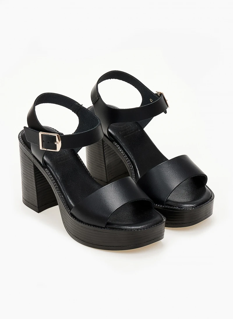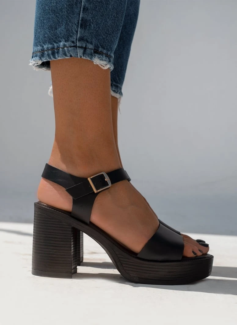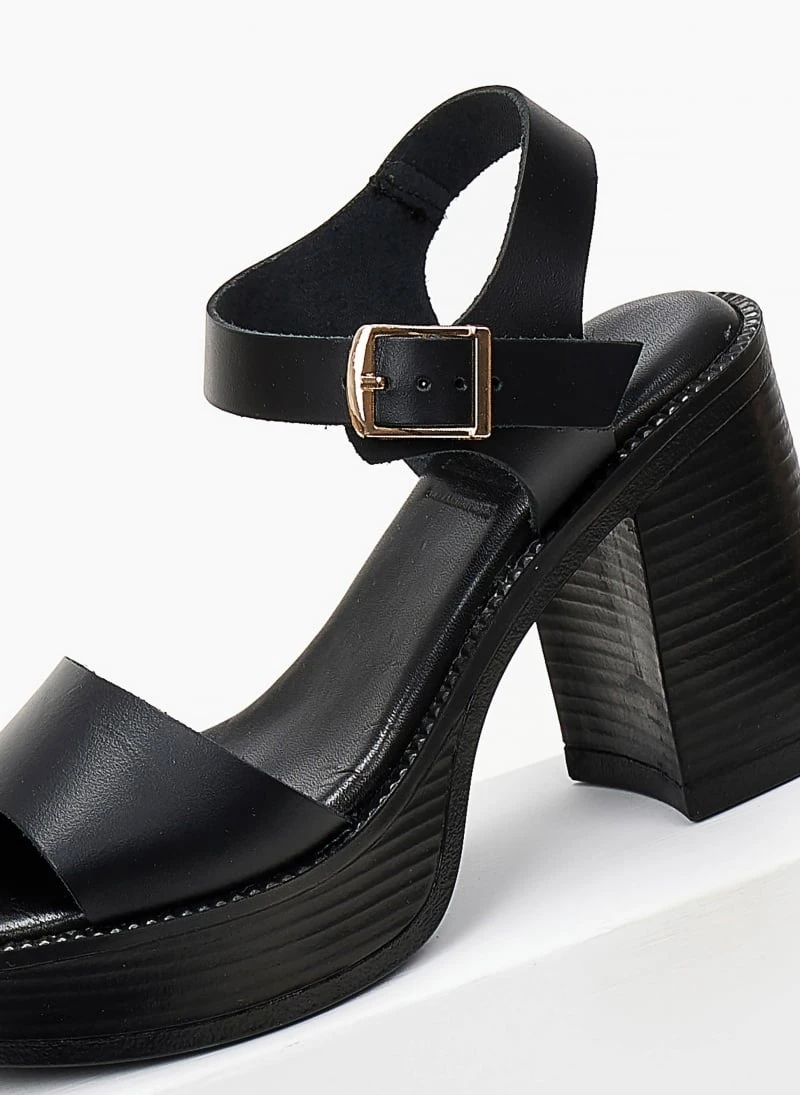 Πέδιλα δερμάτινα με χοντρό τακούνι Tfp – Μαύρο
