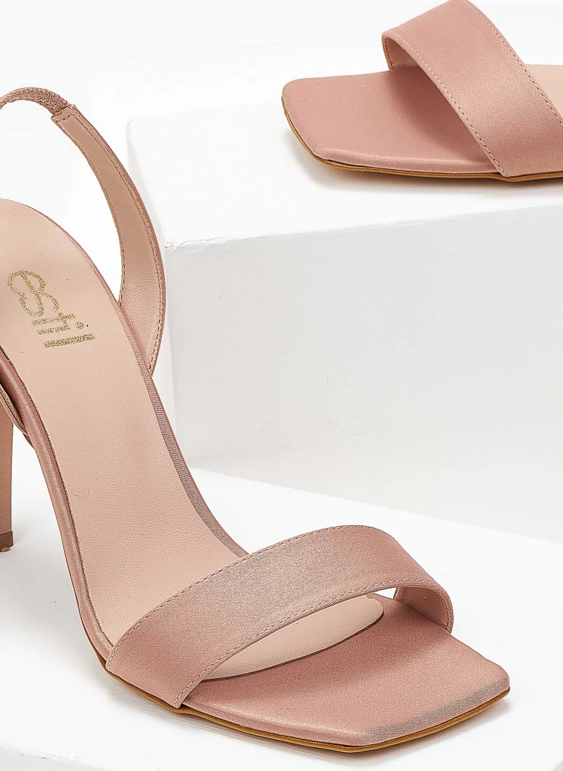 Πέδιλα Estil σατέν με λεπτή φάσα και λεπτό τακούνι.Έχουν λουράκι με διακριτικό λάστιχο στο πίσω μέρος.Καρέ γραμμή.Ελληνικής καατσκευής.