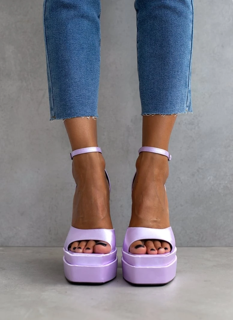 Πέδιλα Platform σατέν TFP με μπαρέτα – Λιλά