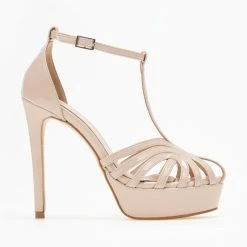 Πέδιλα σατέν tfp με ρετρό σχέδιο. Δένουν με μπαρέτα στο ύψος του αστραγάλου. Έχουν λεπτή φιάπα. Ελληνικής κατασκευής