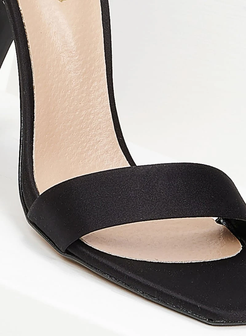 TFP σατέν πέδιλα.Έχουν κλειστή φτέρνα.Δένουν με μπαρέτα στο ύψος του αστραγάλου.Καρέ γραμμή.Δερμάτινος πάτος.Ελληνικής κατασκευής.