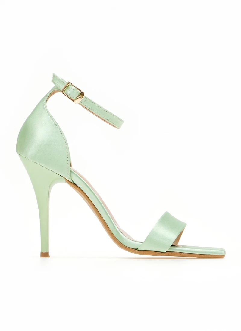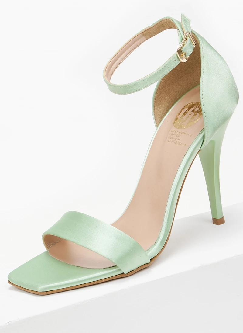 TFP σατέν πέδιλα.Έχουν κλειστή φτέρνα.Δένουν με μπαρέτα στο ύψος του αστραγάλου.Καρέ γραμμή.Δερμάτινος πάτος.Ελληνικής κατασκευής.