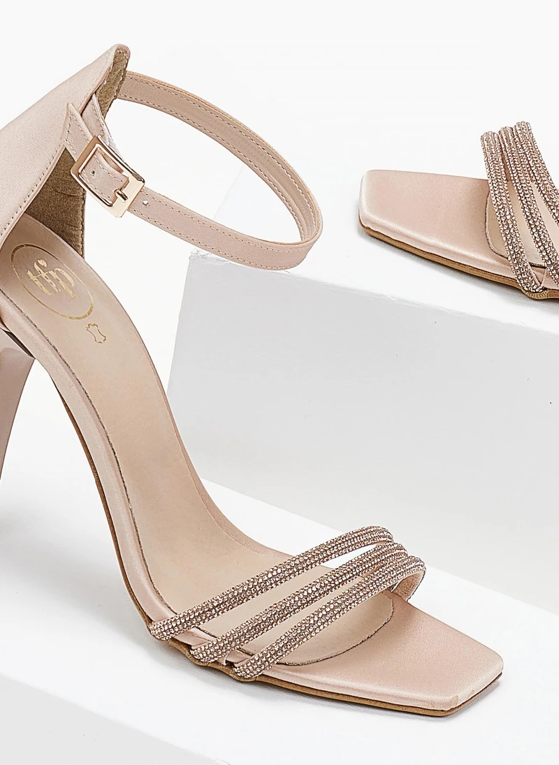 Πέδιλα σατέν TFP με Strass λουράκια – Nude