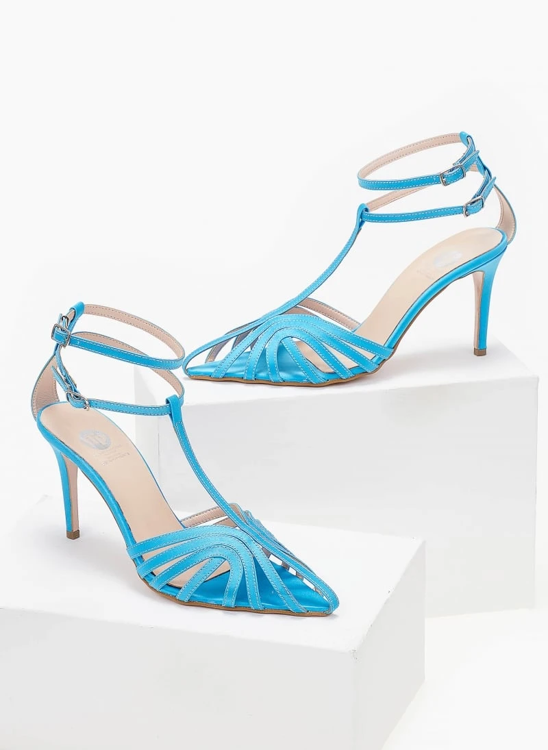 Πέδιλα TFP Retro σατέν με ανοίγματα – Γαλάζιο