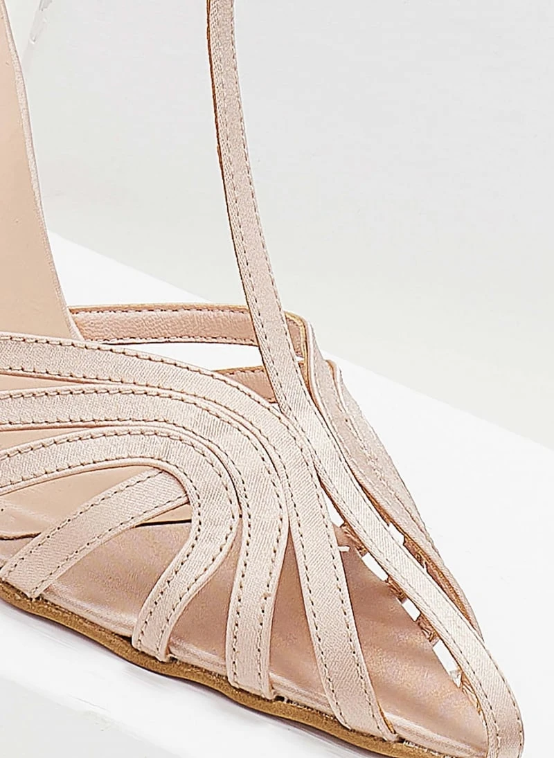 Πέδιλα TFP Retro σατέν με ανοίγματα – Nude