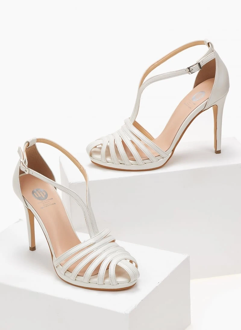 Ρετρό TFP πέδιλα σε μεταλλικές αποχρώσεις. Δένουν με λουράκια στο ύψος του αστραγάλου. Έχουν κλειστή φτέρνα και λεπτή φιάπα. Ελληνικής κατασκευής.