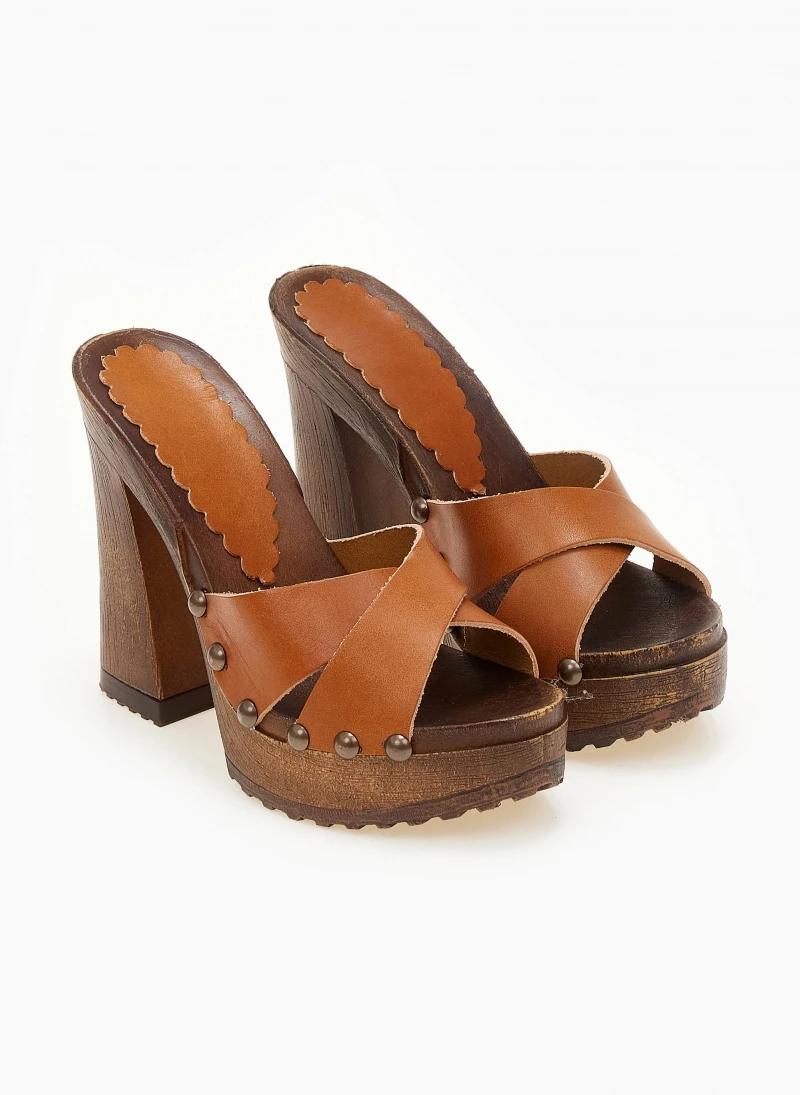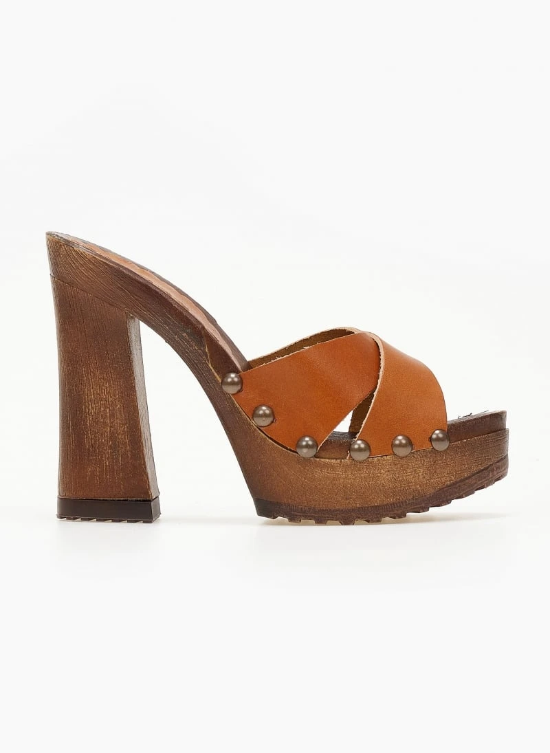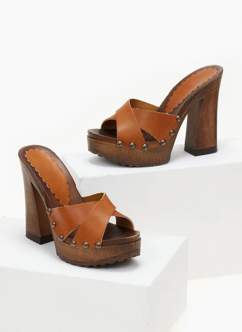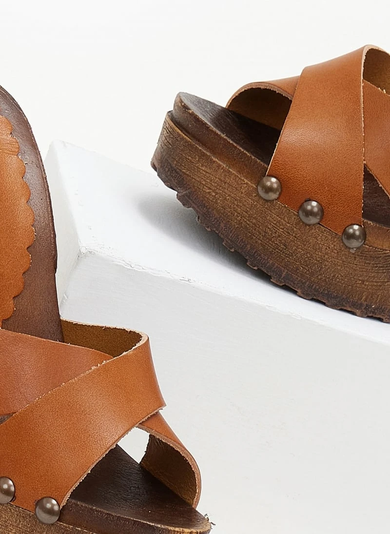 Δερμάτινα τσόκαρα με χιαστί φάσες. Έχουν τρουκς στο πλάι. Ελληνικής κατασκευής.