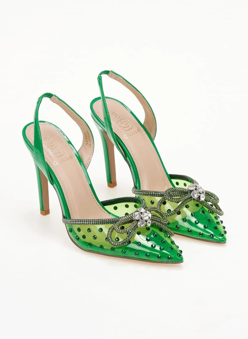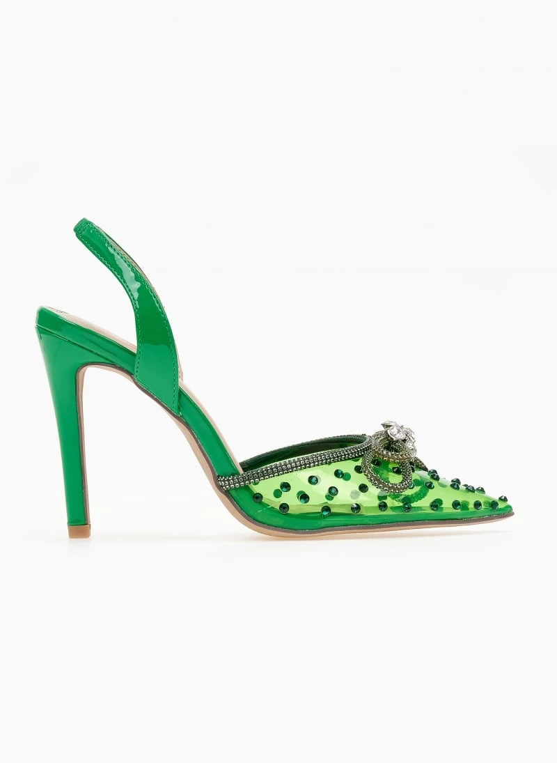 The Fashion Project Γόβες μυτερές με Strass και διαφάνεια – Πράσινο
