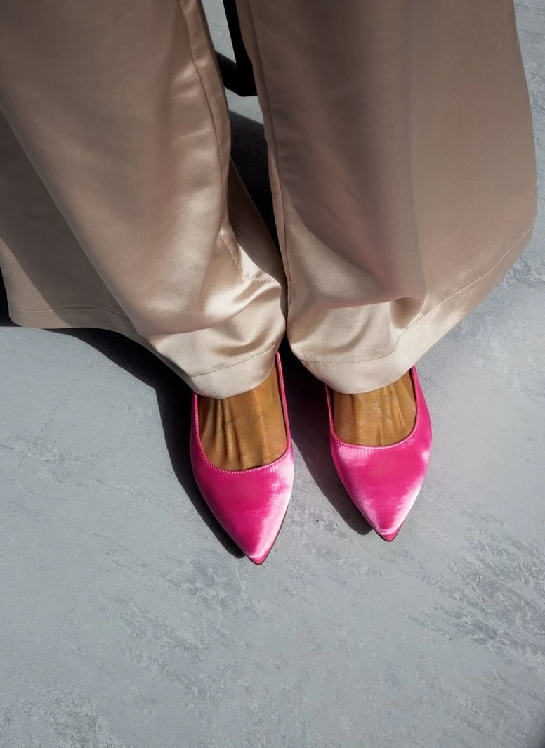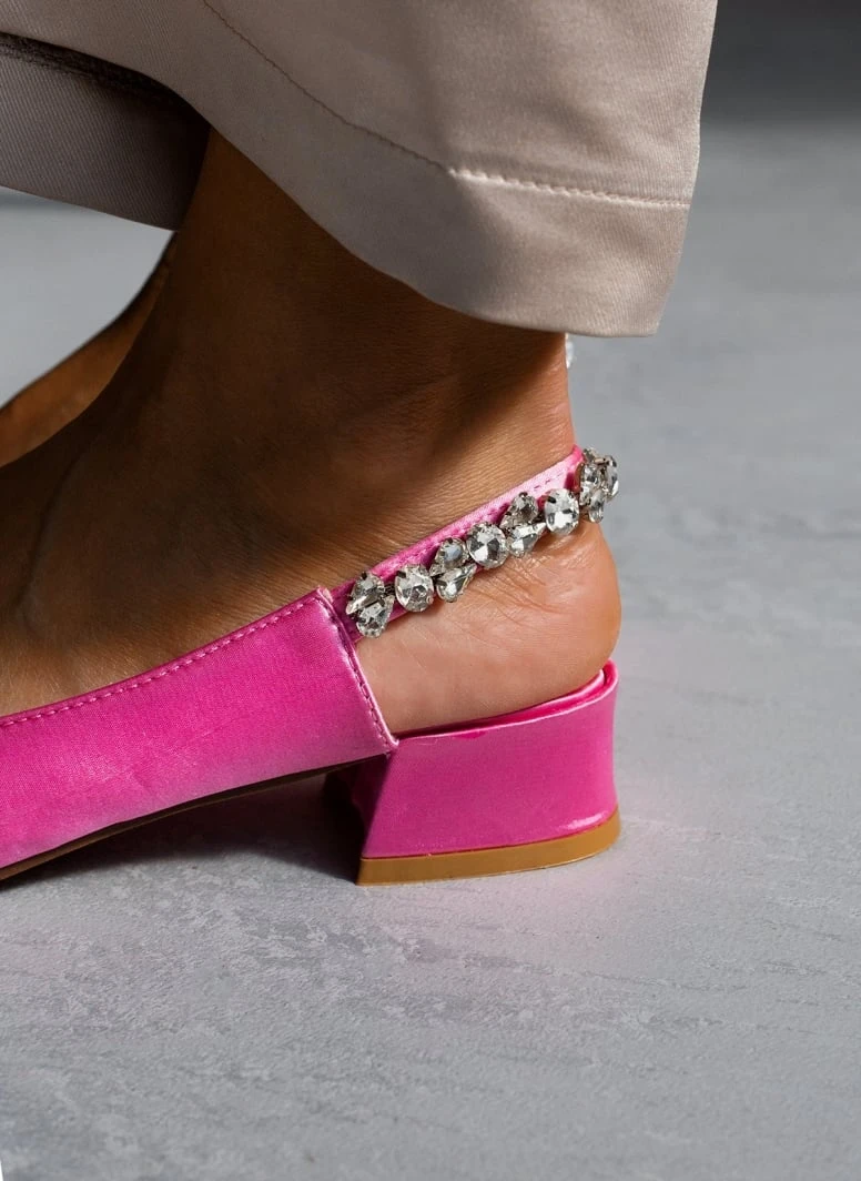 The Fashion Project Γόβες μυτερές σατέν με πέτρες – Φούξια