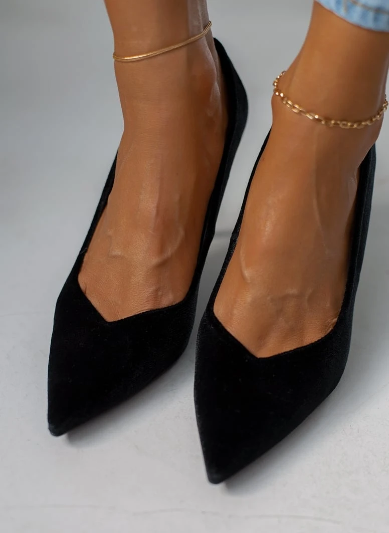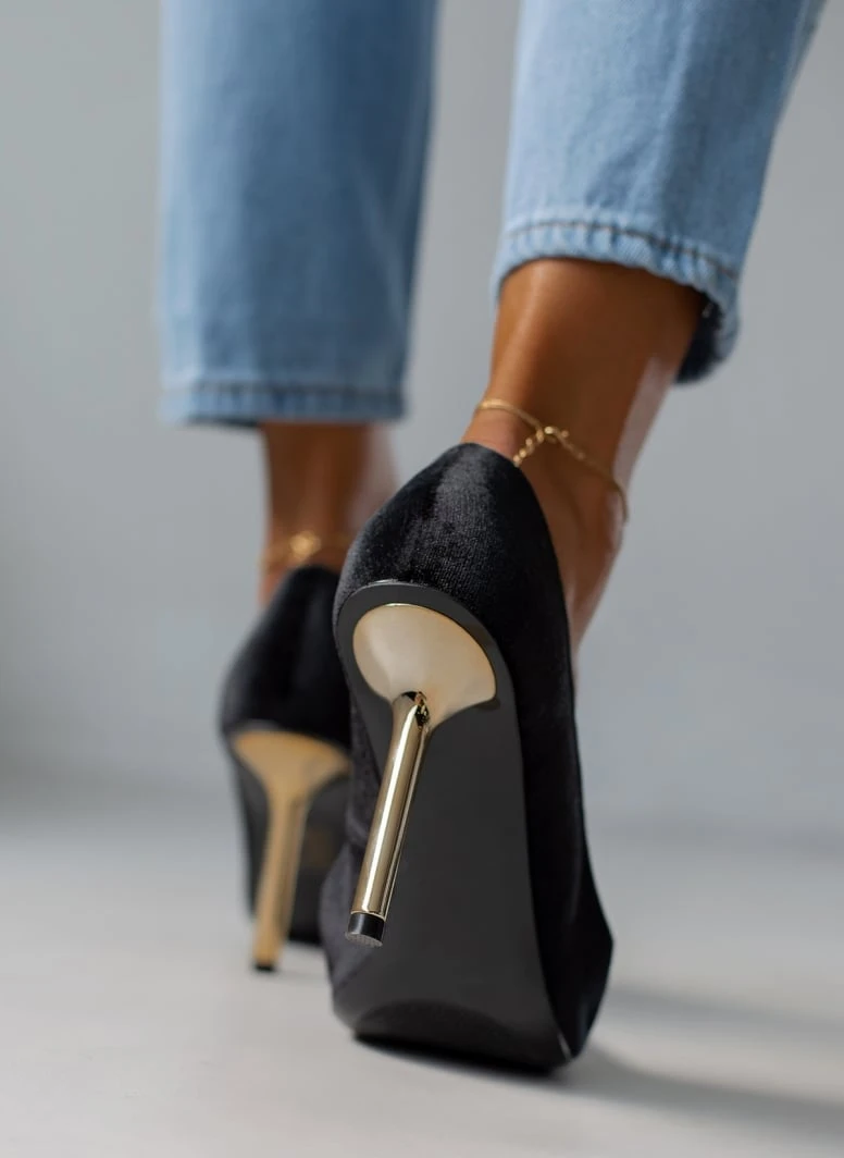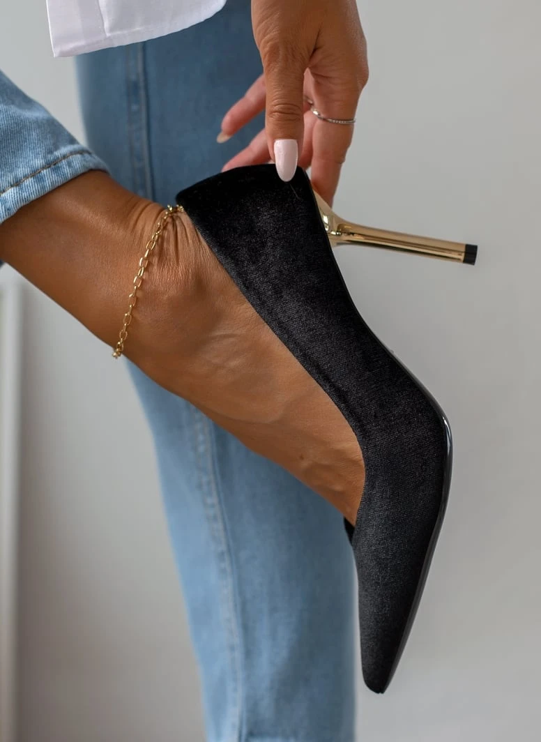 The Fashion Project Γόβες μυτερές βελουτέ – Μαύρο
