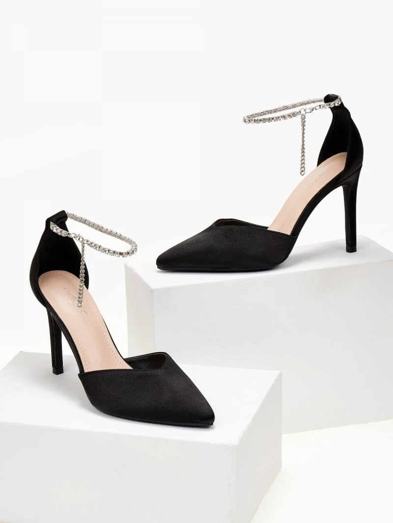 The Fashion Project Γόβες σατέν με Anklet Strass – Μαύρο
