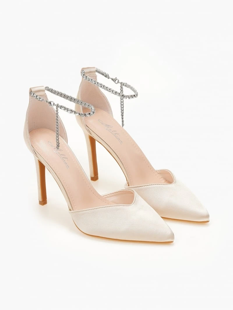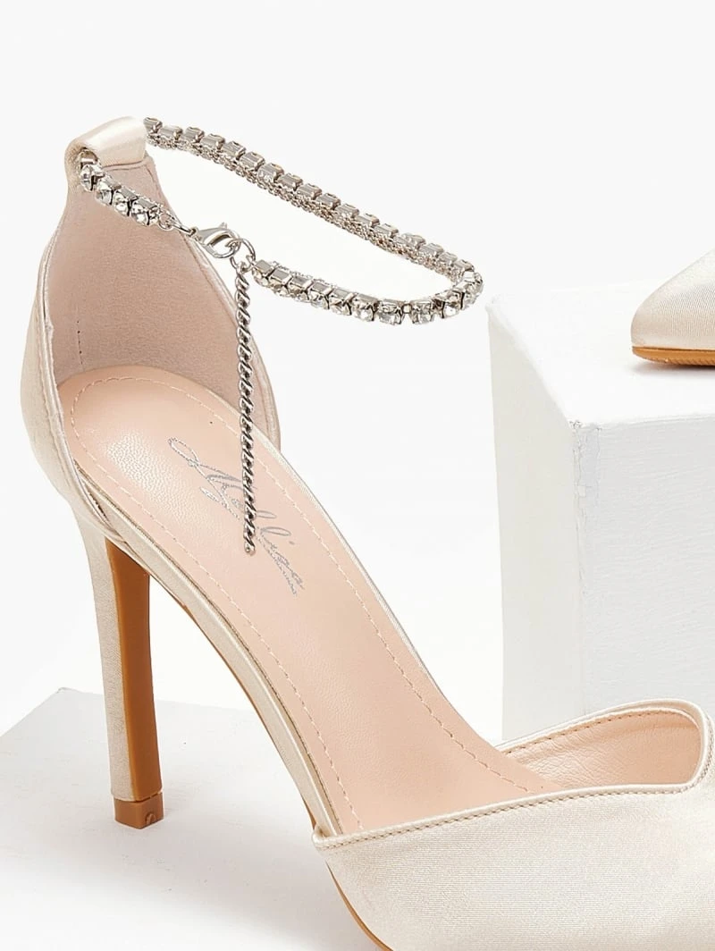 The Fashion Project Γόβες σατέν με Anklet Strass – Μπεζ