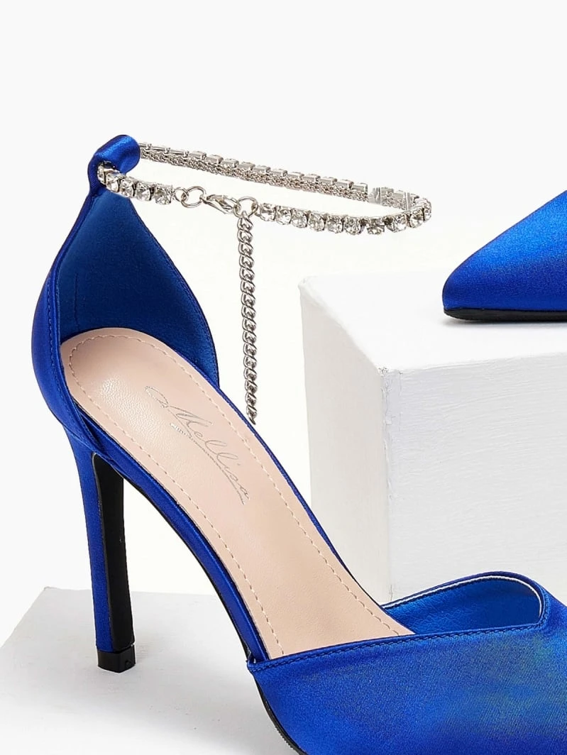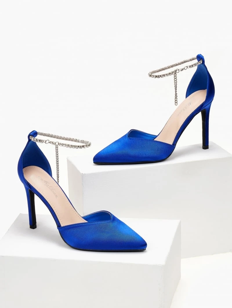 The Fashion Project Γόβες σατέν με Anklet Strass – Μπλε
