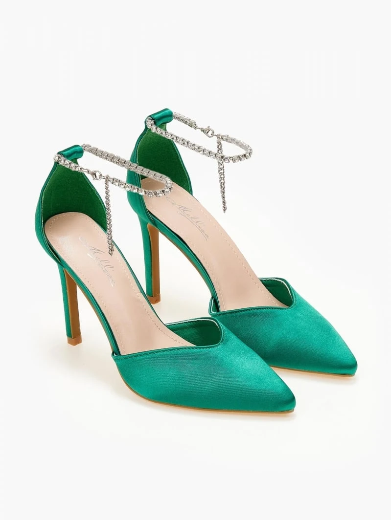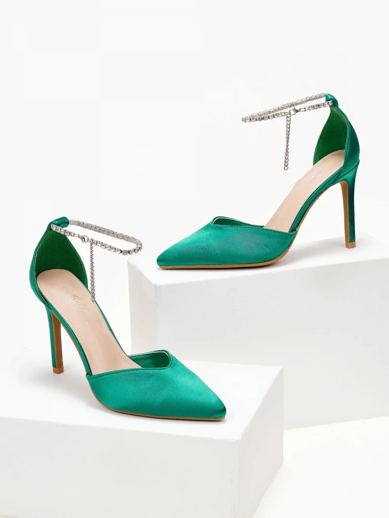 The Fashion Project Γόβες σατέν με Anklet Strass – Πράσινο