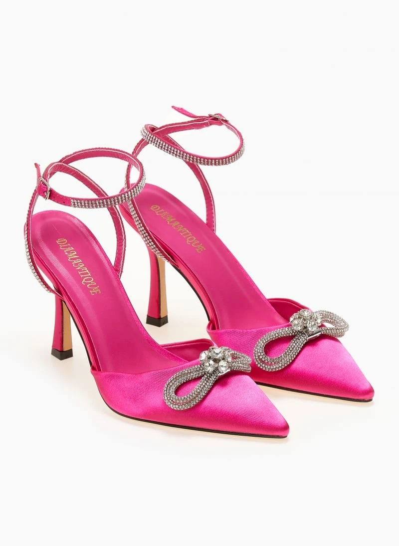 The Fashion Project Γόβες σατέν με μπαρέτα και Strass – Φούξια