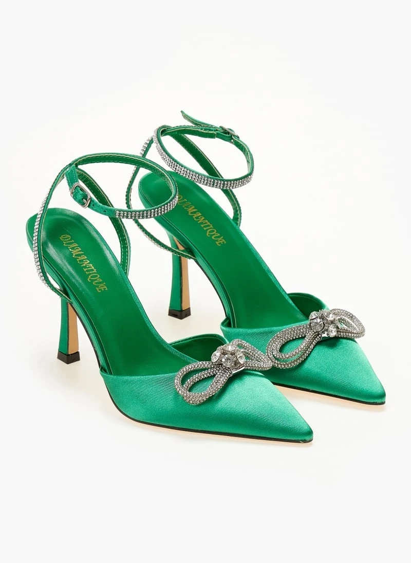 The Fashion Project Γόβες σατέν με μπαρέτα και Strass – Πράσινο