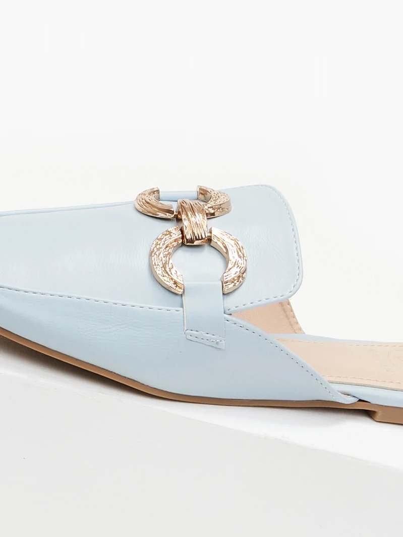 Mules σε καρέ γραμμή χωρίς τακούνι.Έχουν διπλό μεταλλικό κρίκο.Μαλακή σόλα από λάστιχο.