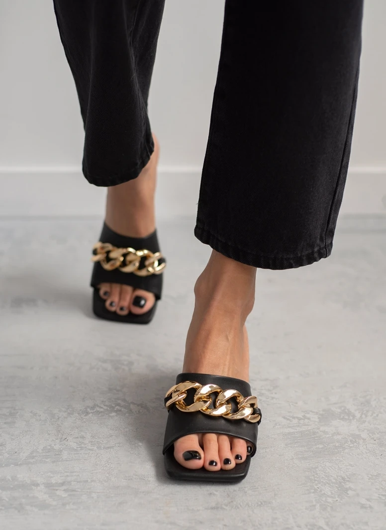 The Fashion Project Mules καρέ με αλυσίδα – Μαύρο