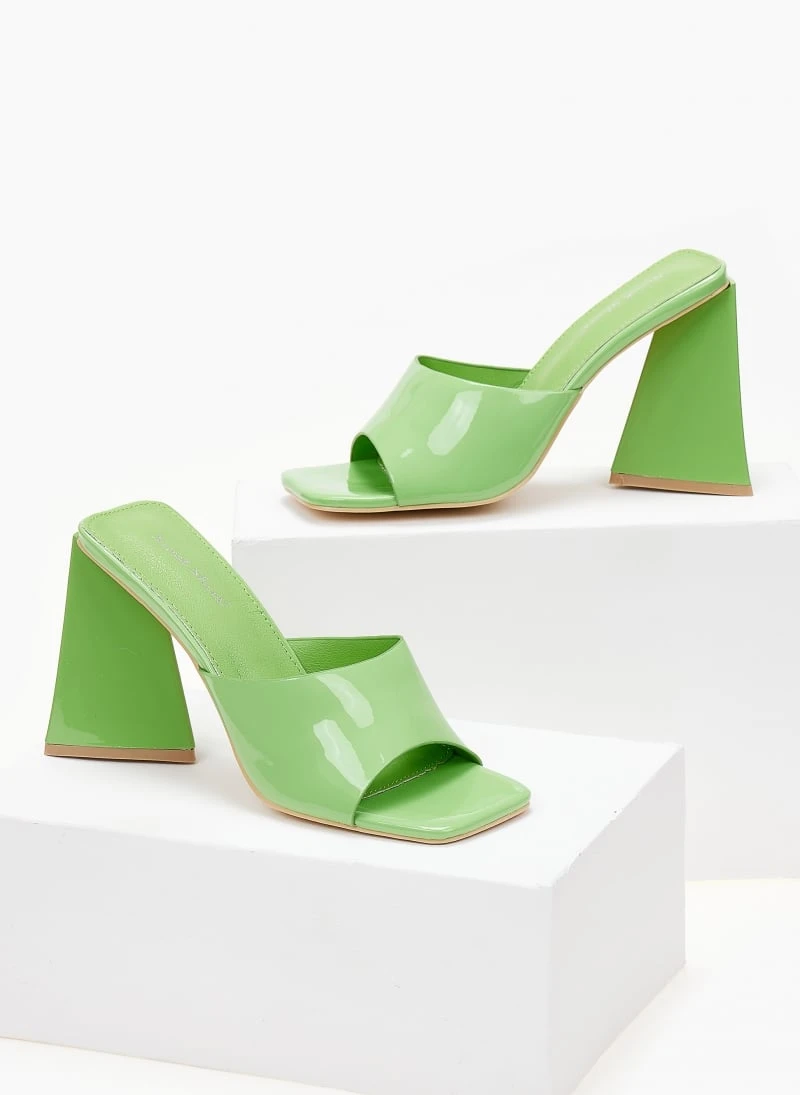 The Fashion Project Mules λουστρίνι με φαρδιά φάσα – Λαχανί