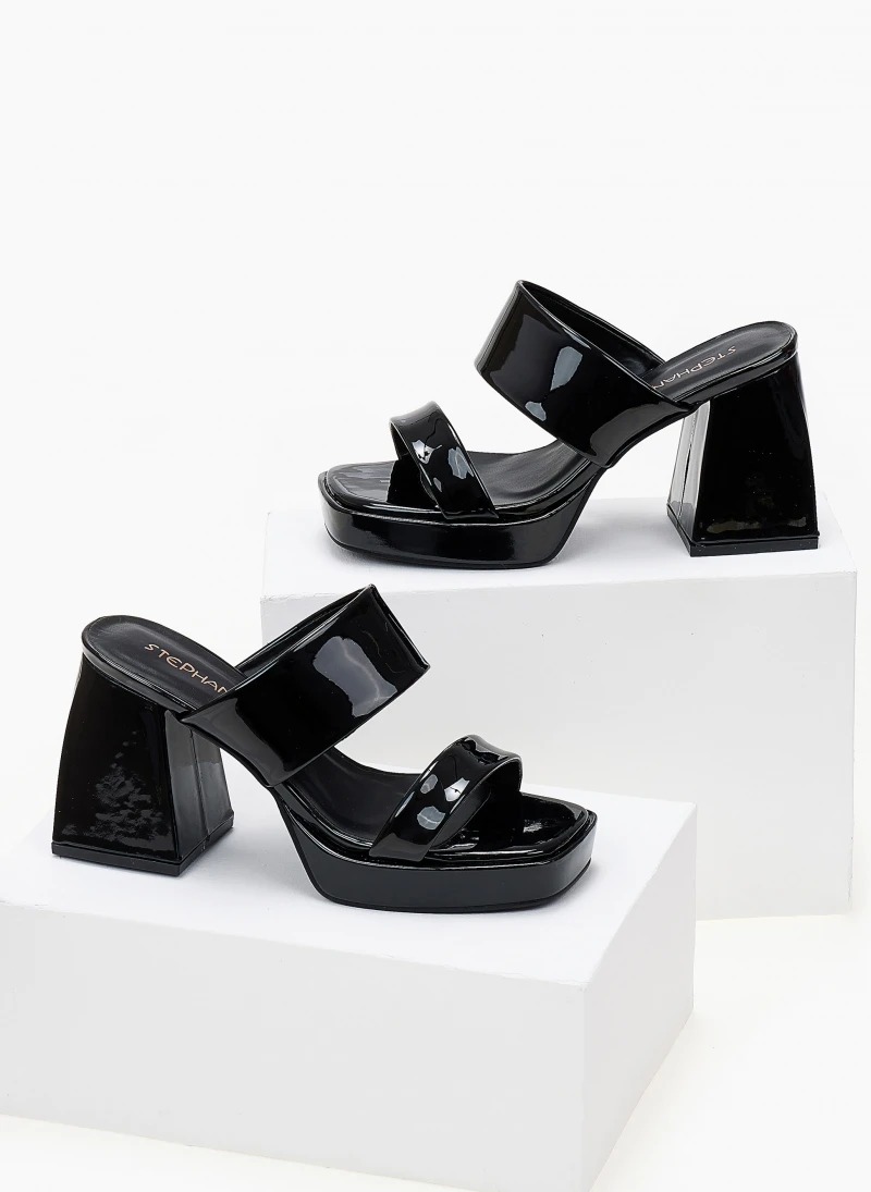 Mules λουστρίνι με δύο φάσες. Έχουν φιάπα και ιδιαίτερο τακούνι.