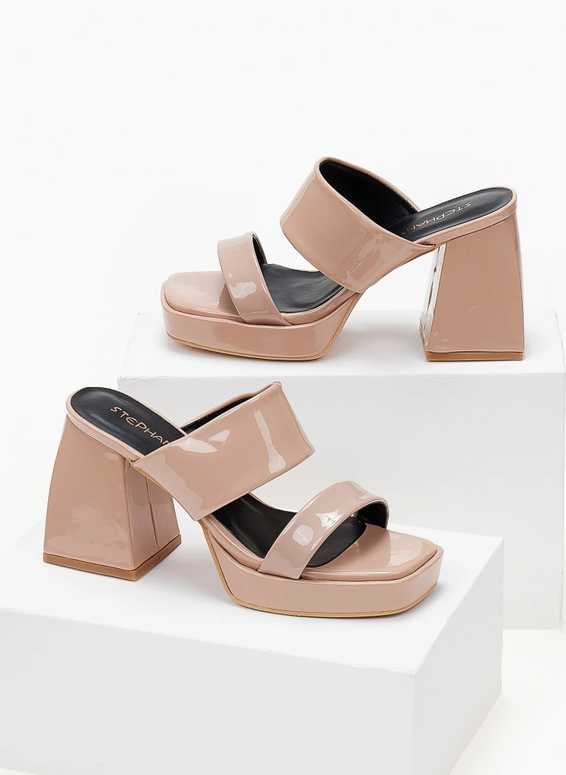Mules λουστρίνι με δύο φάσες. Έχουν φιάπα και ιδιαίτερο τακούνι.