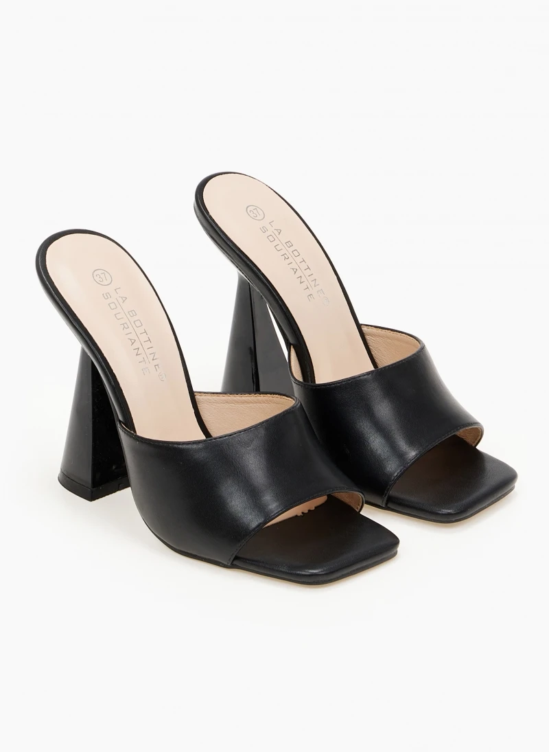 The Fashion Project Mules με γυαλιστερό τακούνι καμπάνα – Μαύρο