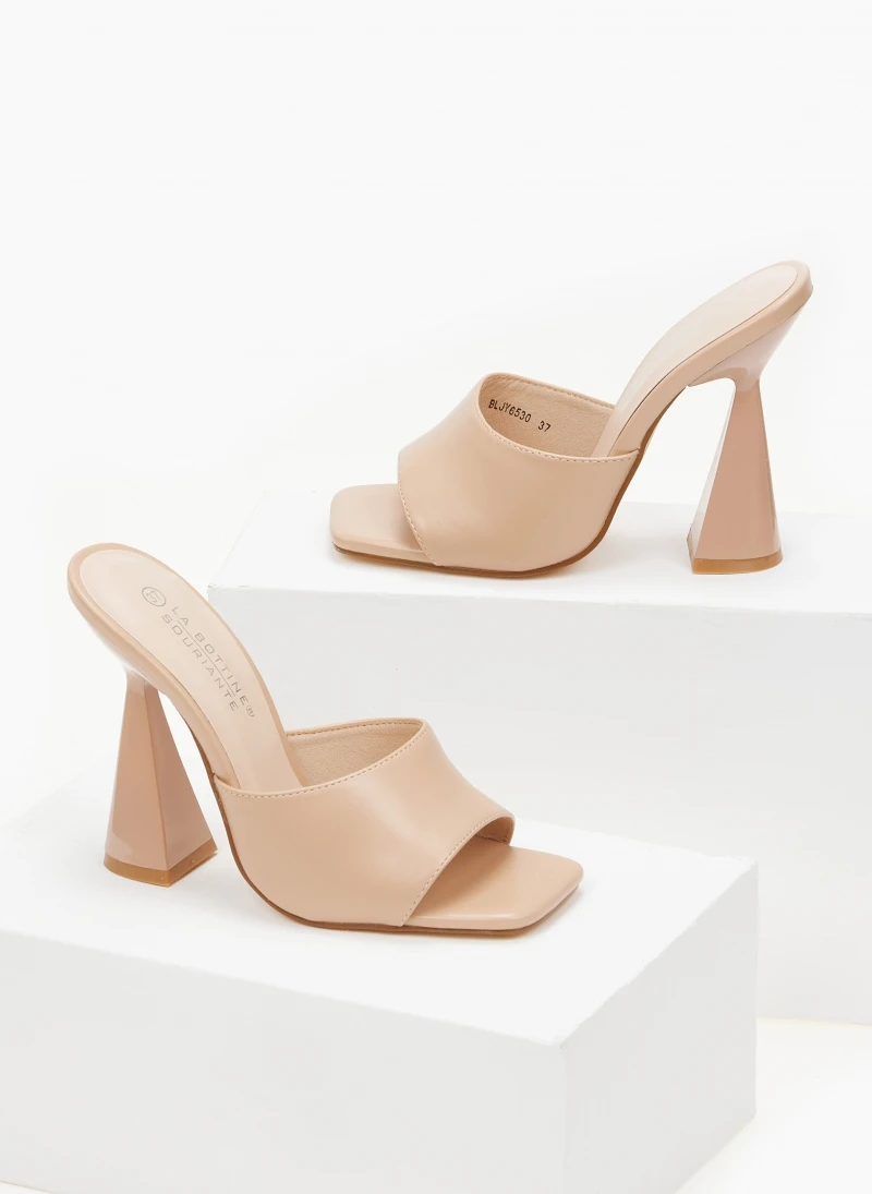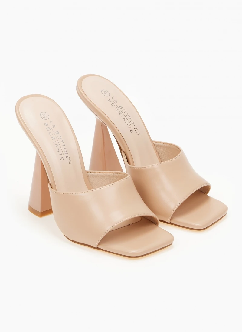 The Fashion Project Mules με γυαλιστερό τακούνι καμπάνα – Nude