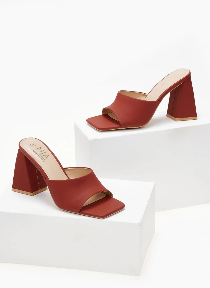 The Fashion Project Mules με ιδιαίτερο τακούνι – Caramel