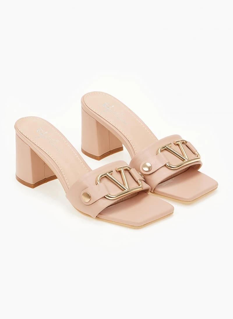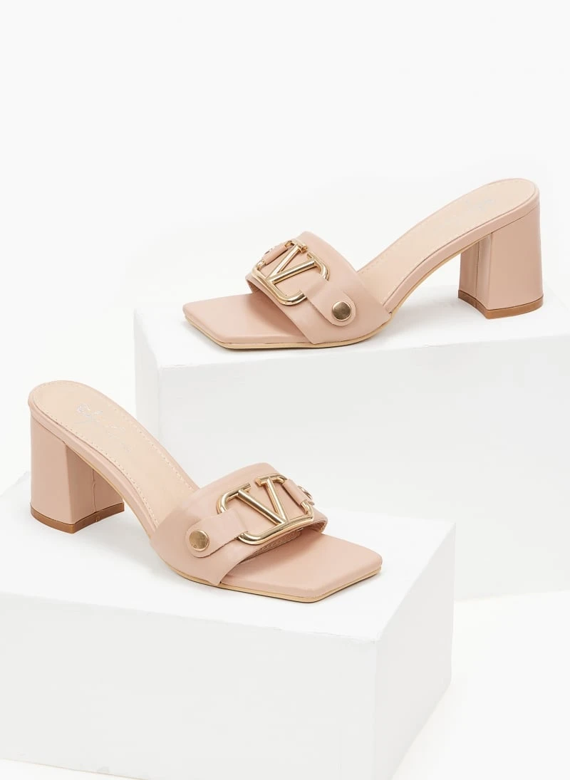 The Fashion Project Mules σε καρέ γραμμή με μεταλλικό διακοσμητικό – Nude