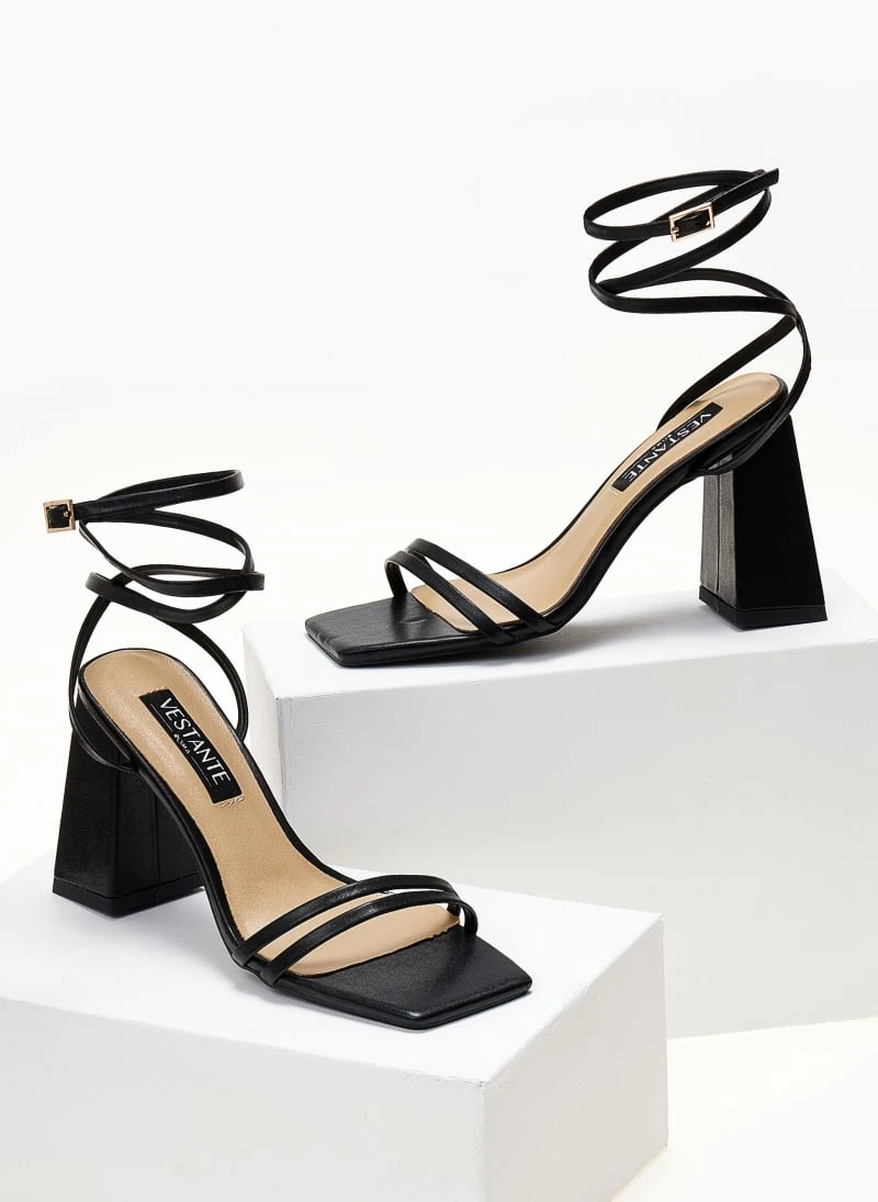 The Fashion Project Πέδιλα καρέ με λεπτά λουράκια – Μαύρο