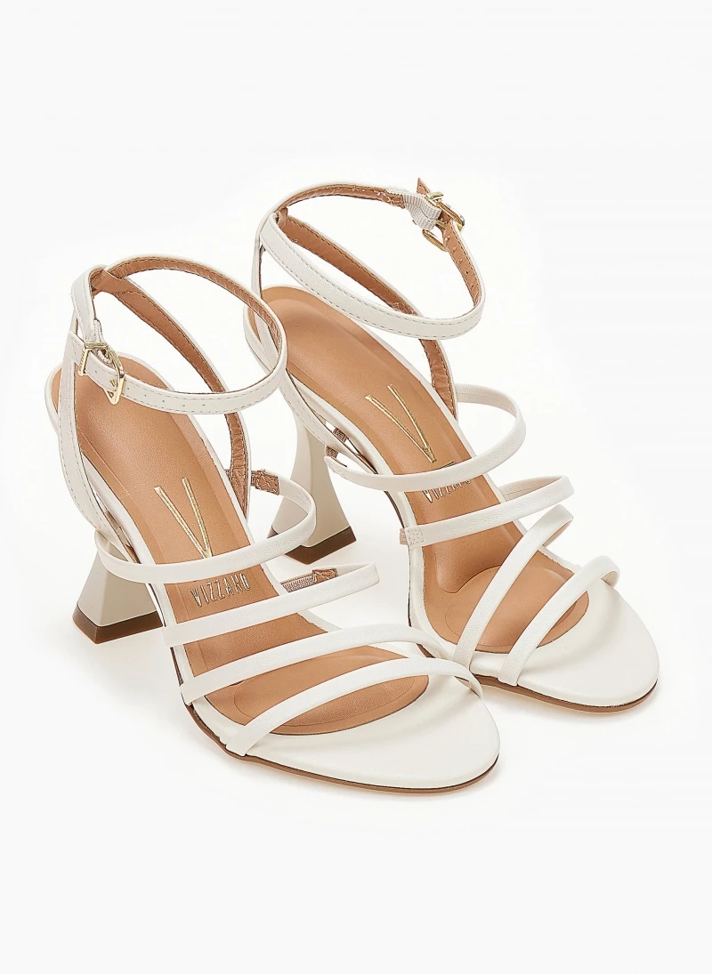Πέδιλα VIZZANO με ιδιαίτερο σχήμα στο τακούνι. Έχουν λεπτά λουράκια. Δένουν με μπαρέτα στο ύψος του αστραγάλου.