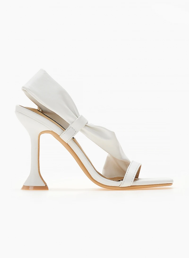 Πέδιλα με ψηλό λεπτό τακούνι. Έχουν μαλακή λοξή φάσα στο κουτεπιέ. Καρέ γραμμή.