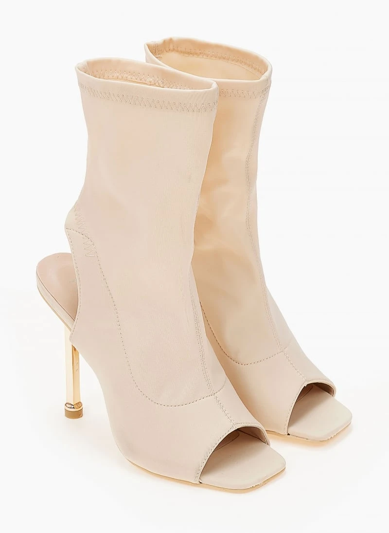 The Fashion Project Πέδιλα μποτάκια με μεταλλικό τακούνι – Μπεζ