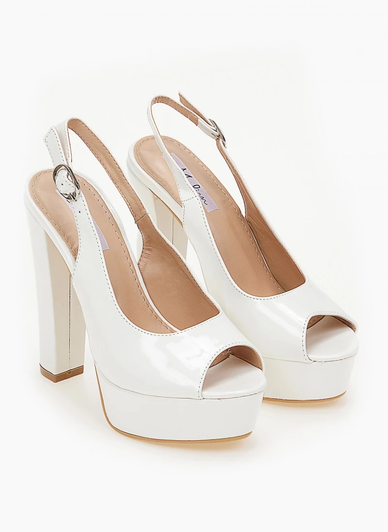 The Fashion Project Πέδιλα Peep Toe λουστρίνι με φιάπα – Λευκό