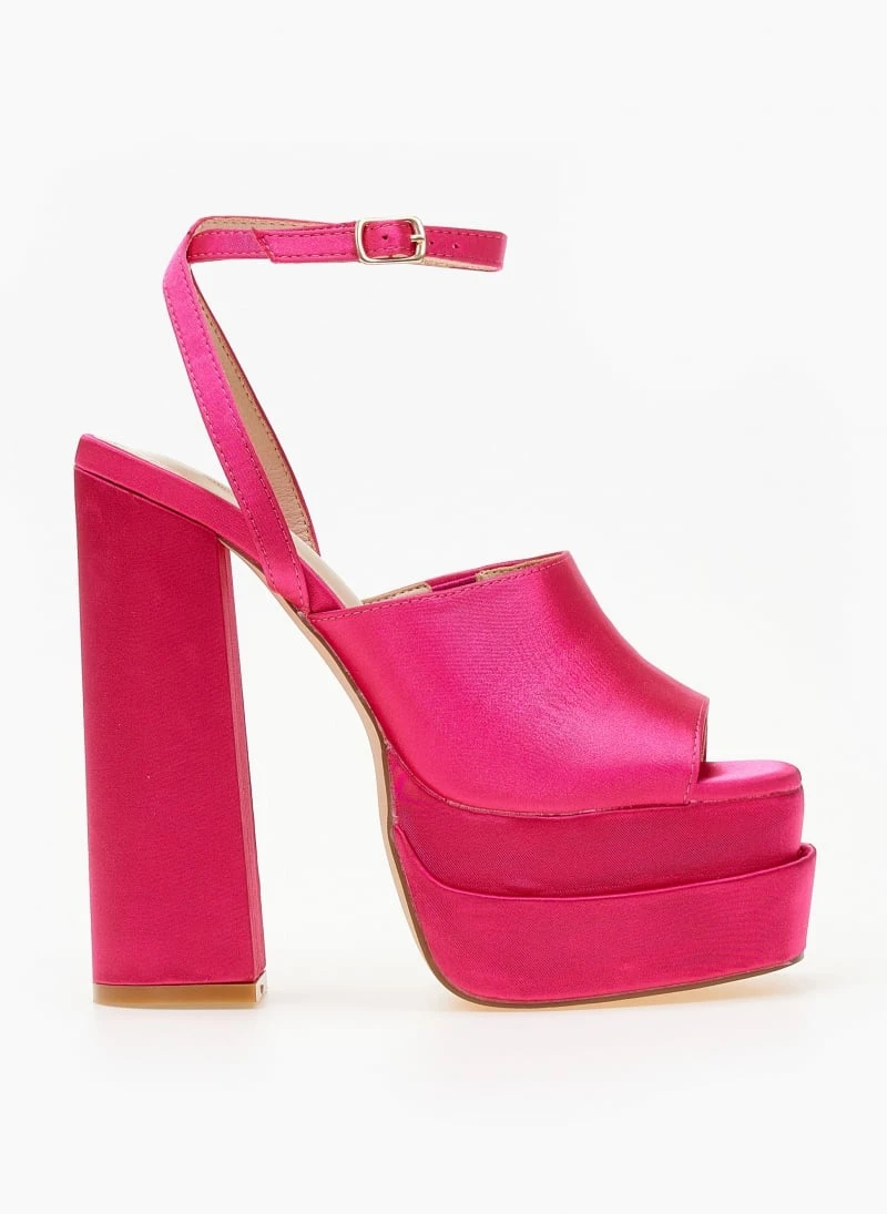 The Fashion Project Πέδιλα Platform σατέν με φαρδιά φάσα – Φούξια