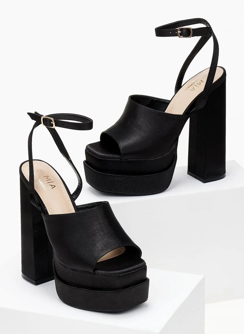 The Fashion Project Πέδιλα Platform σατέν με φαρδιά φάσα – Μαύρο